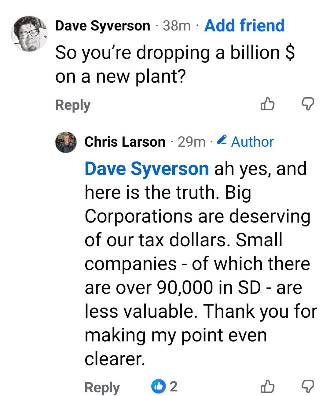 Thousands of people just like me in SD quietly run our operations, with no help from our fellow taxpayers or electeds. They are the silent majority, who are too busy keeping the lights on and their employees fed to pay much attention at all to the fact that our governor is misusing the very money that we business owners have unwittingly put at his disposal. Some, like me, are starting to wake up to the realization that our state is being run by oligarchs. I know because I have gotten to know more and more of my fellow business operators, and none of them are happy with the way our politicians are handing out money like candy to their special friends.