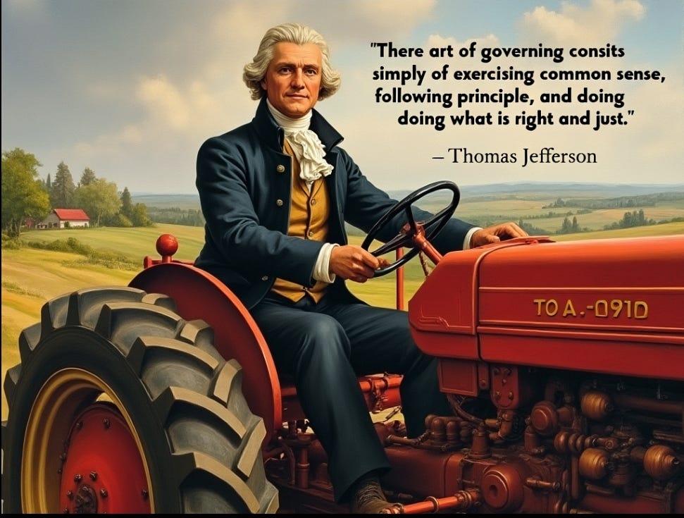 Thomas Jefferson on a tractor